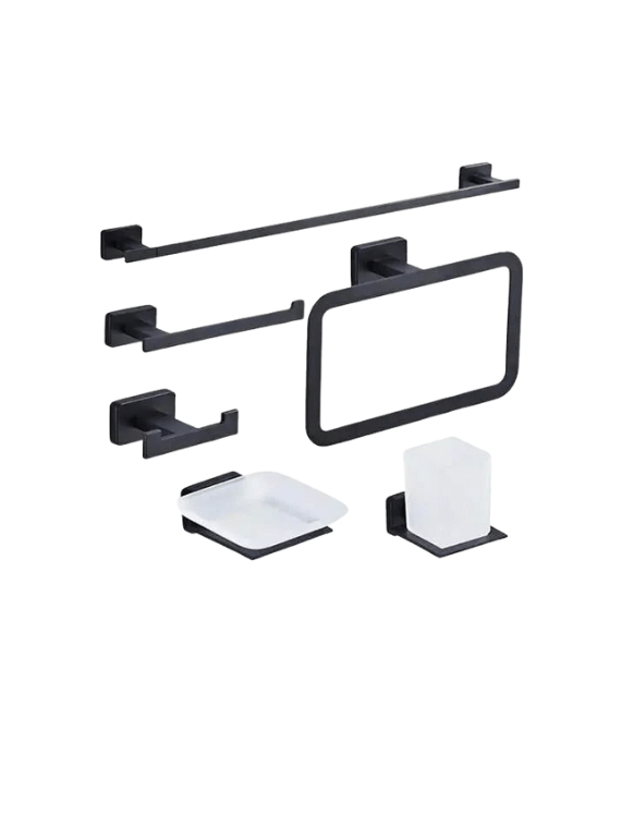 طقم أكسسوارات كود 352 عدد 6 قطع اللون اسود منتج تركي استانلس 304 مربع - كيان - للأدوات الصحية والديكورات الحديثة