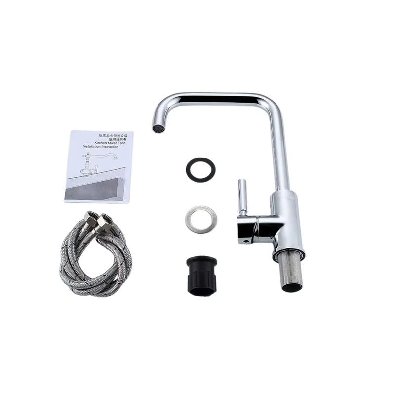 خلاط حوض مطبخ عالي بتصميم عملي يوفّر مساحة حركة أكبر داخل الحوض، ما يجعله مناسبًا لغسل الأواني الكبيرة والاستخدام اليومي.مصنوع من ستانلس ستيل عالي الجودة مع تشطيب كروم لامع يمنح المط...
