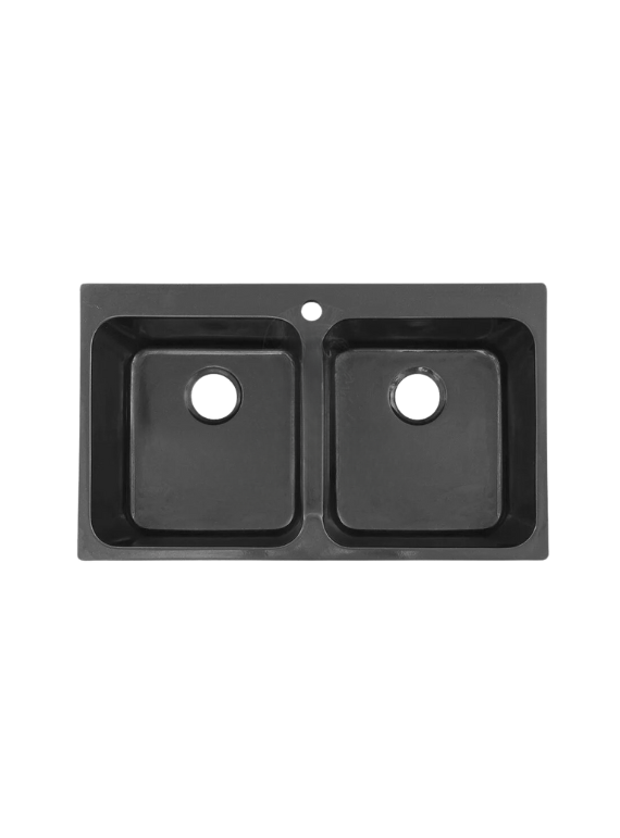 حوض مطبخ جرانيت 308 بعدد 2 عين مقاس خارجى 80 × 50 سم كل عين 40 سم بعمق 19 سم بفتحة خلاط وعدد 2 فتحة للصرف مقاس 3 بوصة اللون اسود استريس + خلاط مطبخ 360 اسود