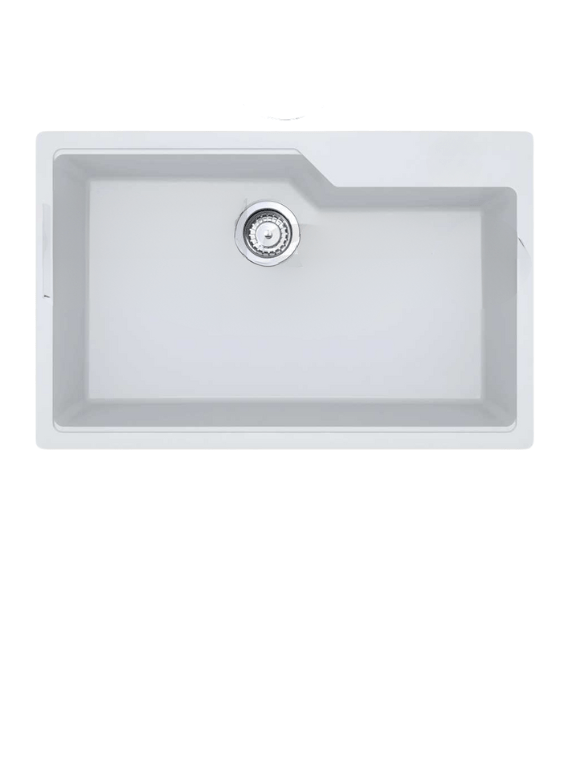 حوض مطبخ جرانيت نسخة فرانكي بمواصفات وجودة اوروبية غير قابل للخدش والتجريح مقاس 80×50 لون ابيض بالصرف 3 بوصه بتقنية النانو سيرامك الغير قابل للخدش والتجريح